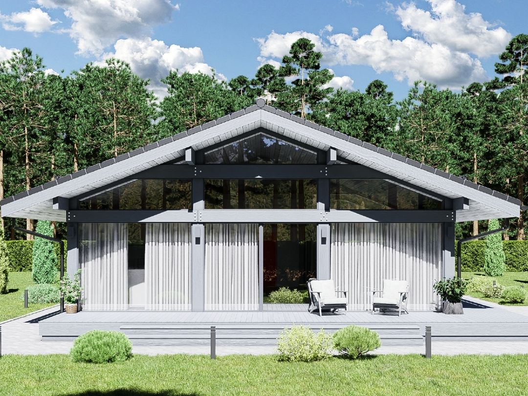 - Надежный каркас из клееного бруса собственного производства с запатентованной технологией терморазрыва + клееные лаги пола 1 и 2 этажа, стропила